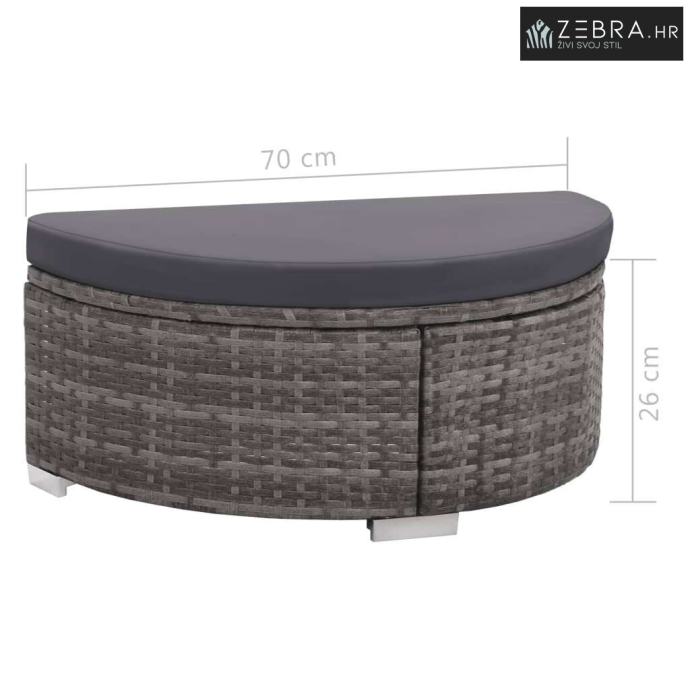 Dimenzije polukružnog taburea: 70 x 35 x 26 cm (Š x D x V)