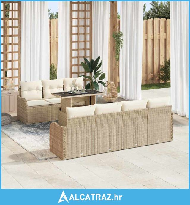 8-dijelni set za vrtne kauče s jastučićima bež poli ratan, 2-sjedni vr