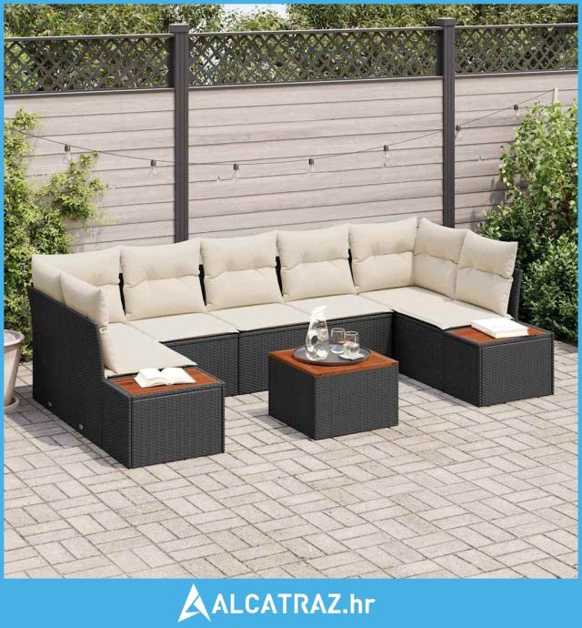 8-dijelni set vrtne sofe s jastucima Crni poly ratan akacija - NOVO