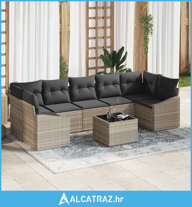 8-dijelni set vrtnih kauča s jastučićima svijetlo sivi poliratan - NOV