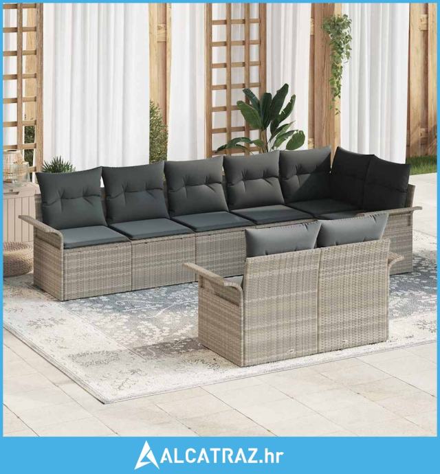 8-dijelni set vrtnih kauča s jastučićima svjetlosivi poli ratan - NOVO