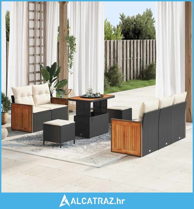 8 dijelni set vrtnih kauča s jastucima crni sintetički ratan akacija -