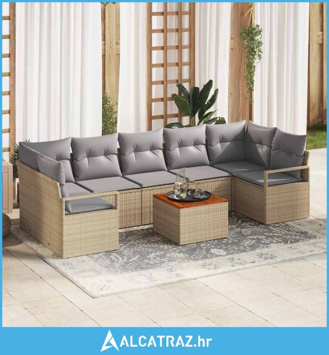 8-dijelni set vrtnih sofa s jastučićima Bež Poli ratan Akacija - NOVO
