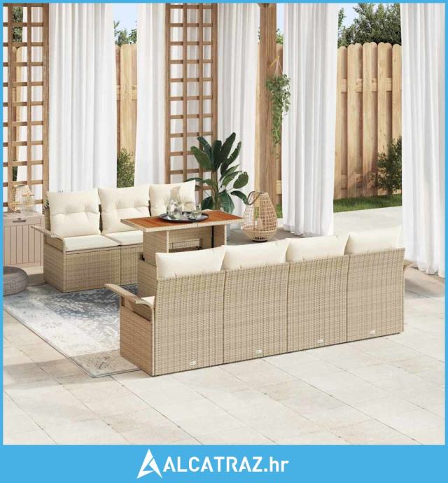 8-dijelni set vrtnih sofa s jastučićima bež Poli Ratan akacija - NOVO