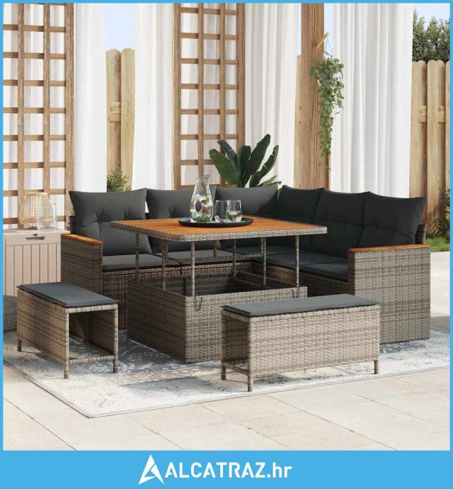 8-dijelni set vrtnih sofa s jastučićima siva poli ratan akacija - NOVO