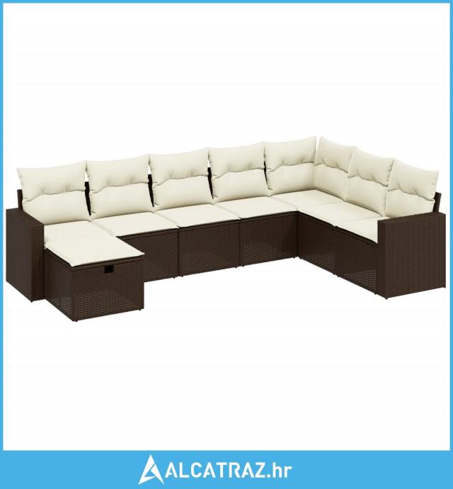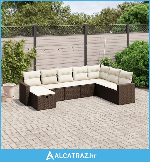 8-dijelni set vrtnih sofa s jastucima smeđi od poliratana - NOVO