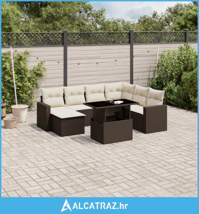 8-dijelni set vrtnih sofa s jastucima smeđi od poliratana - NOVO