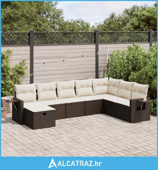 8-dijelni set vrtnih sofa s jastucima smeđi od poliratana - NOVO