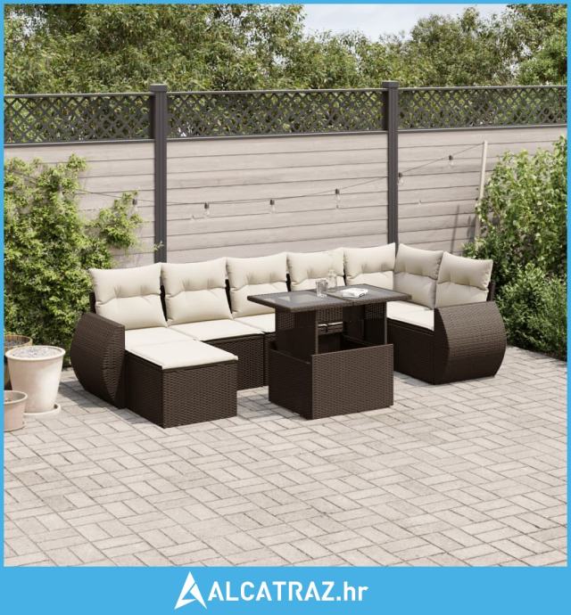 8-dijelni set vrtnih sofa s jastucima smeđi od poliratana - NOVO