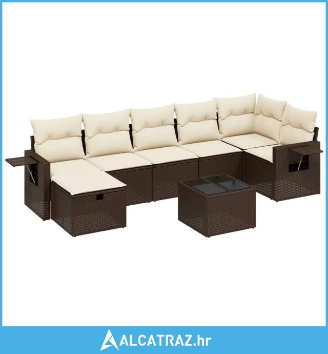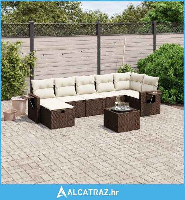 8-dijelni set vrtnih sofa s jastucima smeđi od poliratana - NOVO