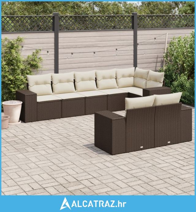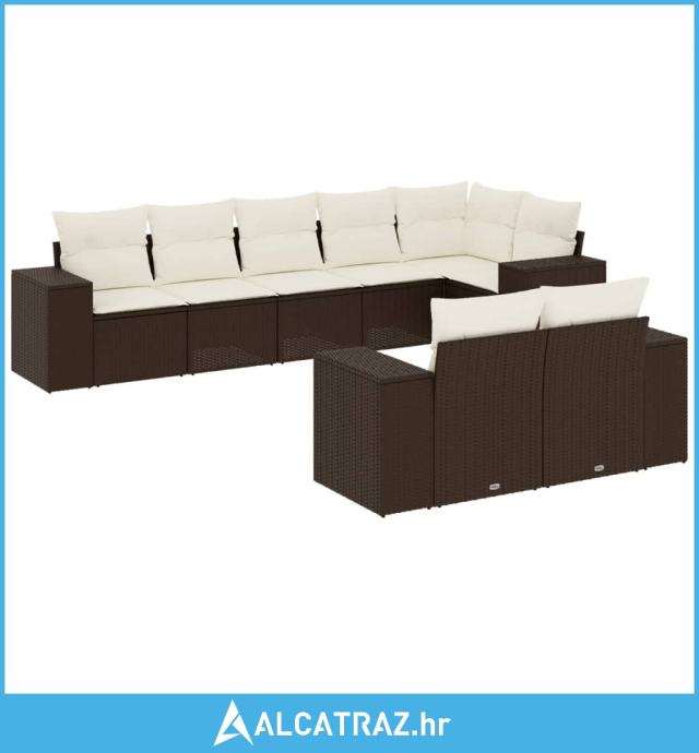 8-dijelni set vrtnih sofa s jastucima smeđi od poliratana - NOVO