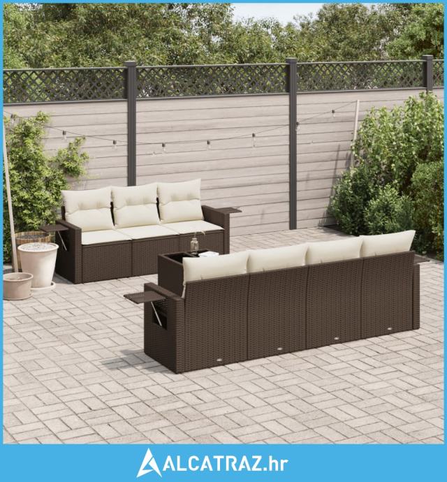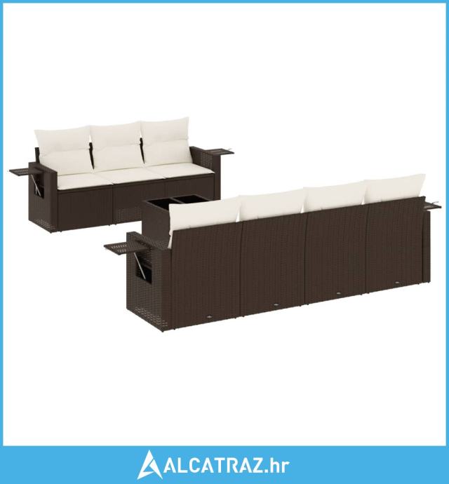 8-dijelni set vrtnih sofa s jastucima smeđi od poliratana - NOVO