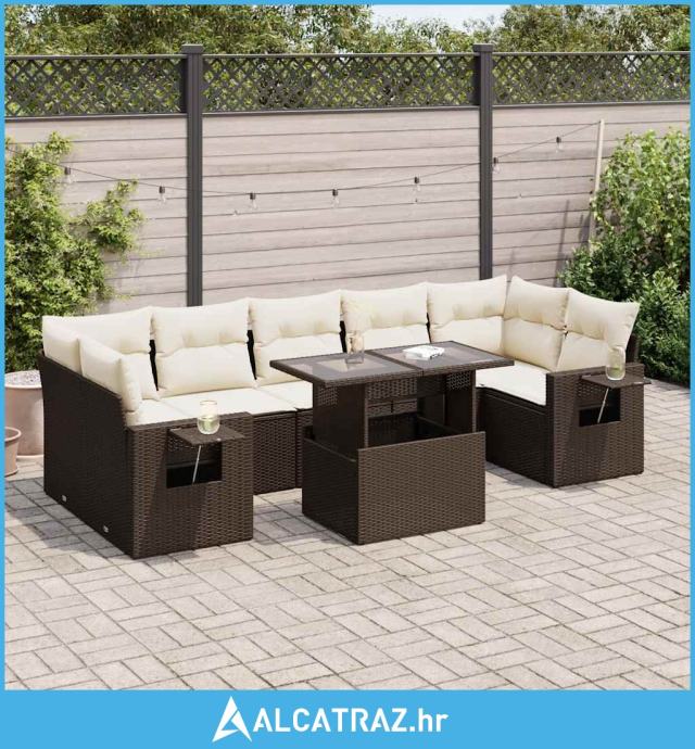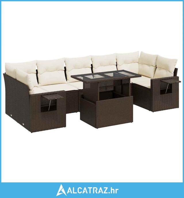 8-dijelni set vrtnih sofa s jastucima smeđi od poliratana - NOVO