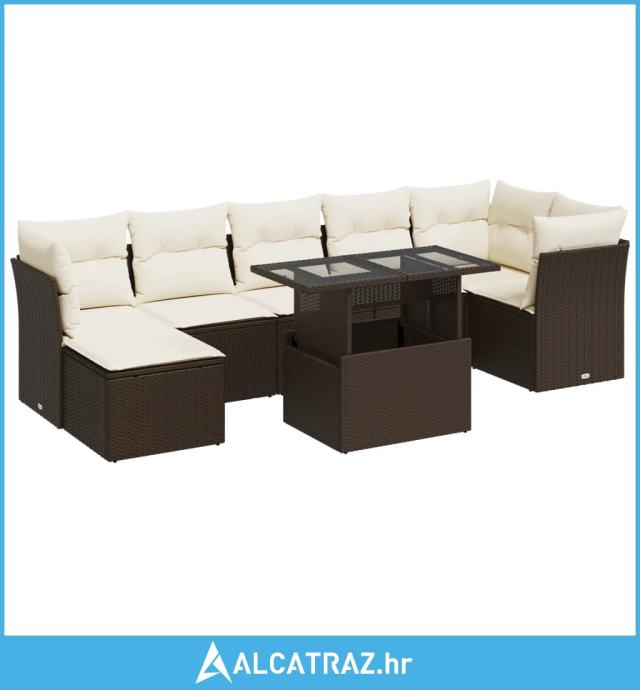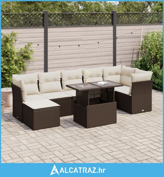 8-dijelni set vrtnih sofa s jastucima smeđi od poliratana - NOVO