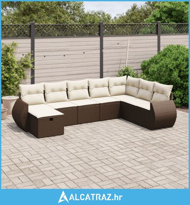 8-dijelni set vrtnih sofa s jastucima smeđi od poliratana - NOVO