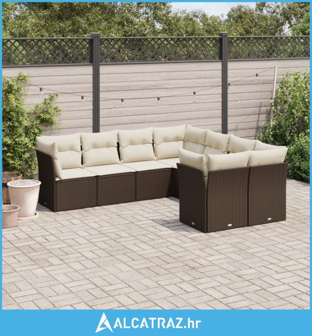 8-dijelni set vrtnih sofa s jastucima smeđi od poliratana - NOVO