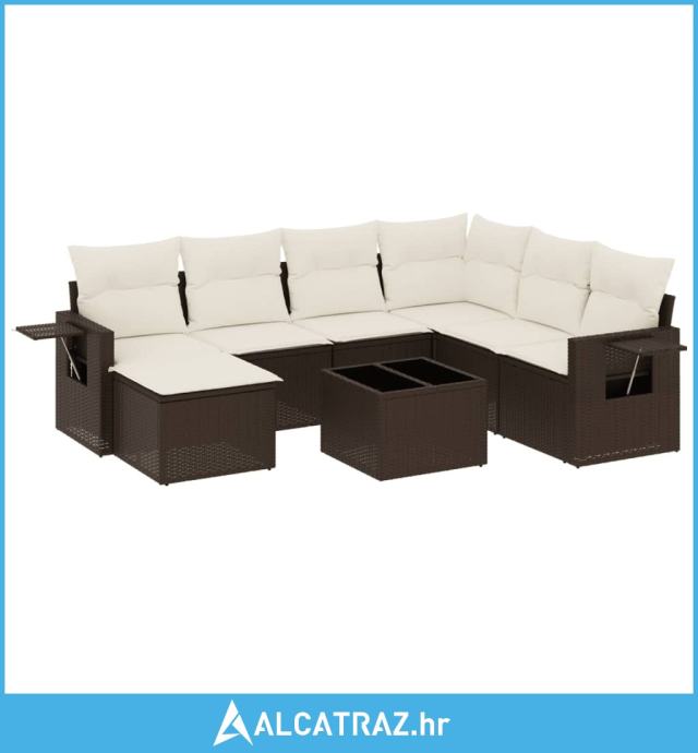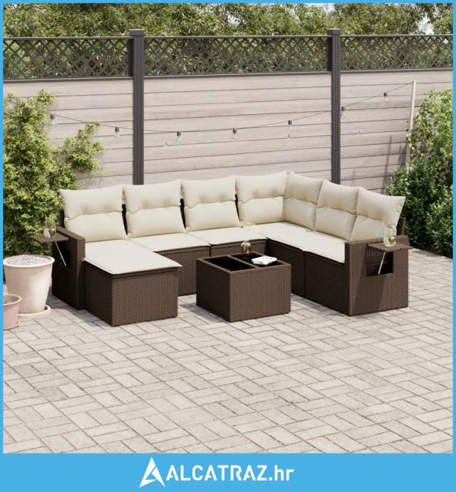 8-dijelni set vrtnih sofa s jastucima smeđi od poliratana - NOVO