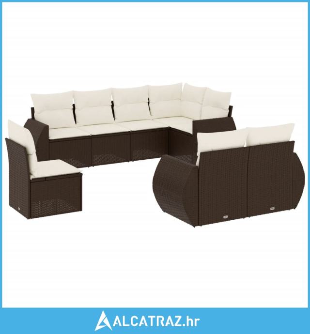 8-dijelni set vrtnih sofa s jastucima smeđi od poliratana - NOVO