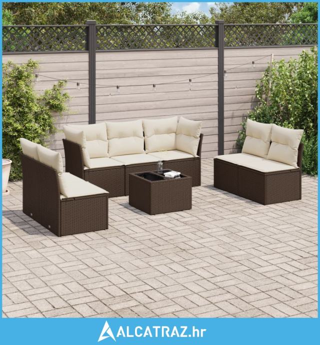 8-dijelni set vrtnih sofa s jastucima smeđi od poliratana - NOVO