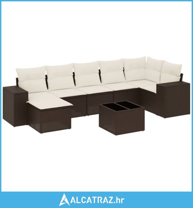 8-dijelni set vrtnih sofa s jastucima smeđi od poliratana - NOVO