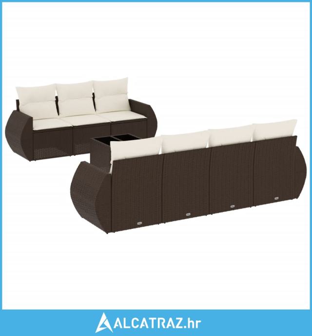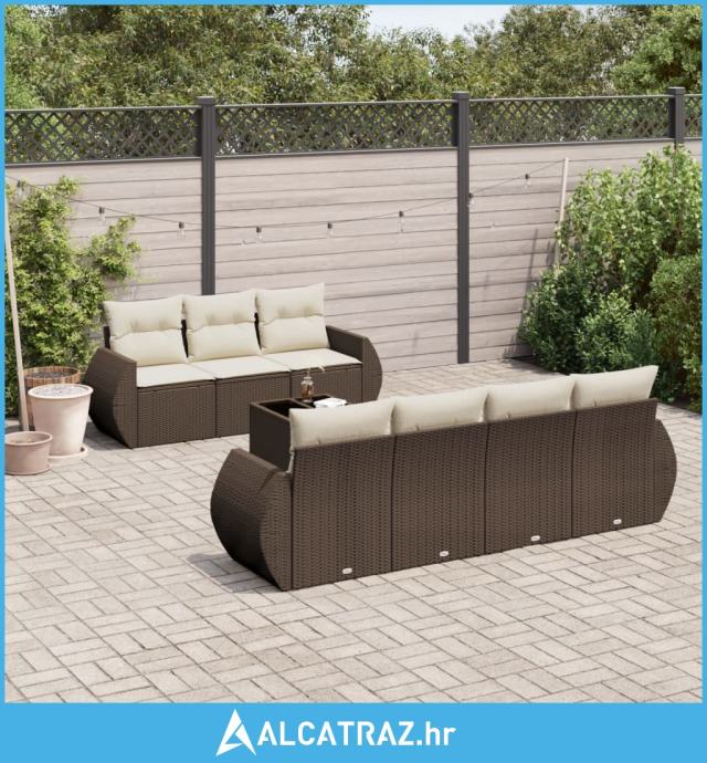 8-dijelni set vrtnih sofa s jastucima smeđi od poliratana - NOVO
