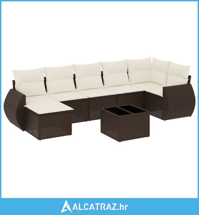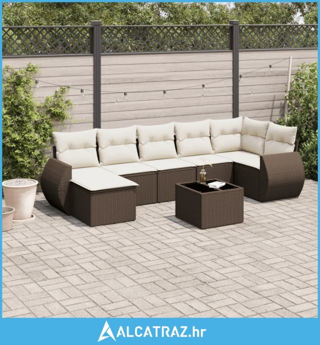 8-dijelni set vrtnih sofa s jastucima smeđi od poliratana - NOVO