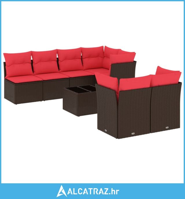 8-dijelni set vrtnih sofa s jastucima smeđi od poliratana - NOVO