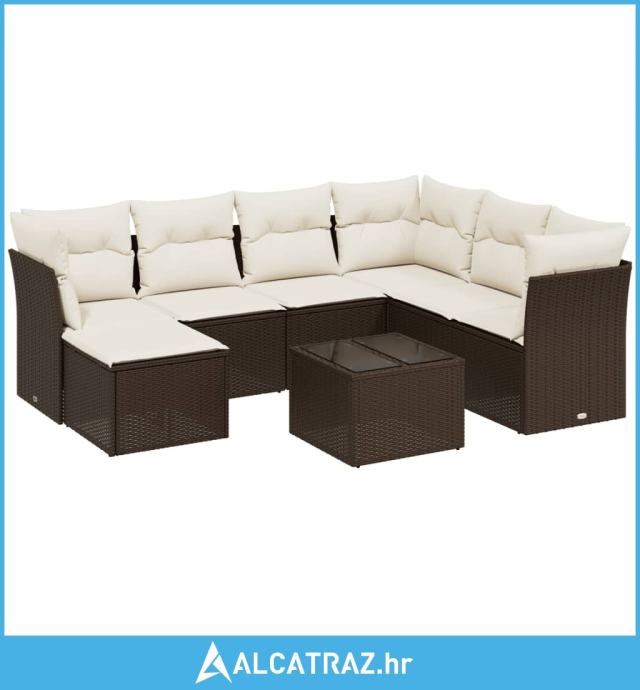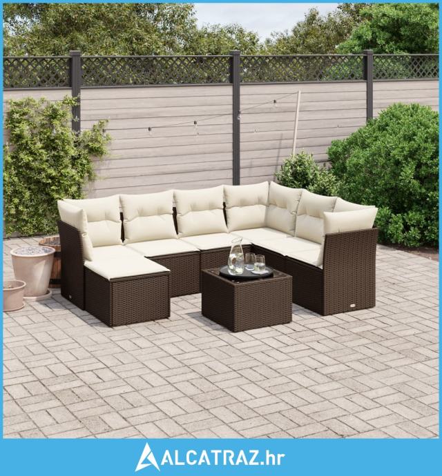 8-dijelni set vrtnih sofa s jastucima smeđi od poliratana - NOVO