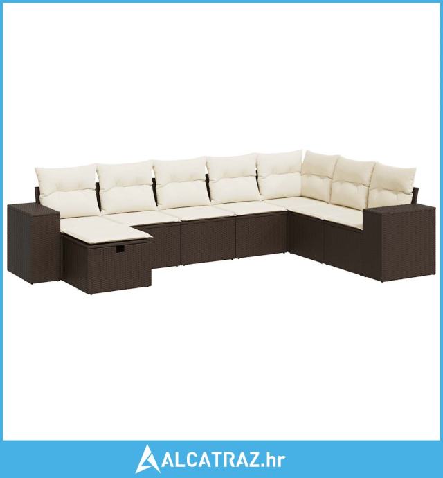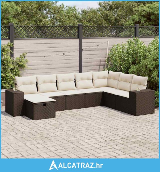 8-dijelni set vrtnih sofa s jastucima smeđi od poliratana - NOVO