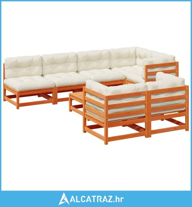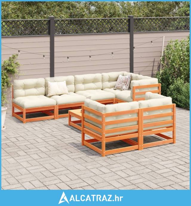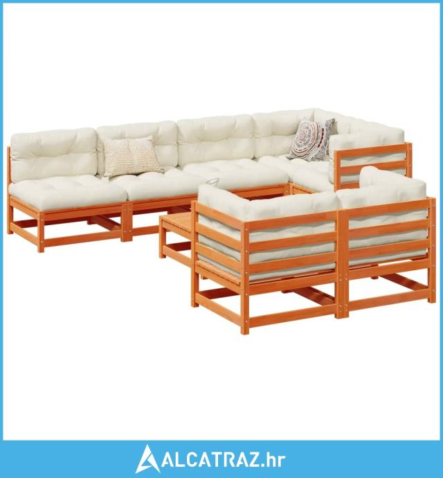 8-dijelni set vrtnih sofa s jastucima voštano smeđi od borovine - NOVO