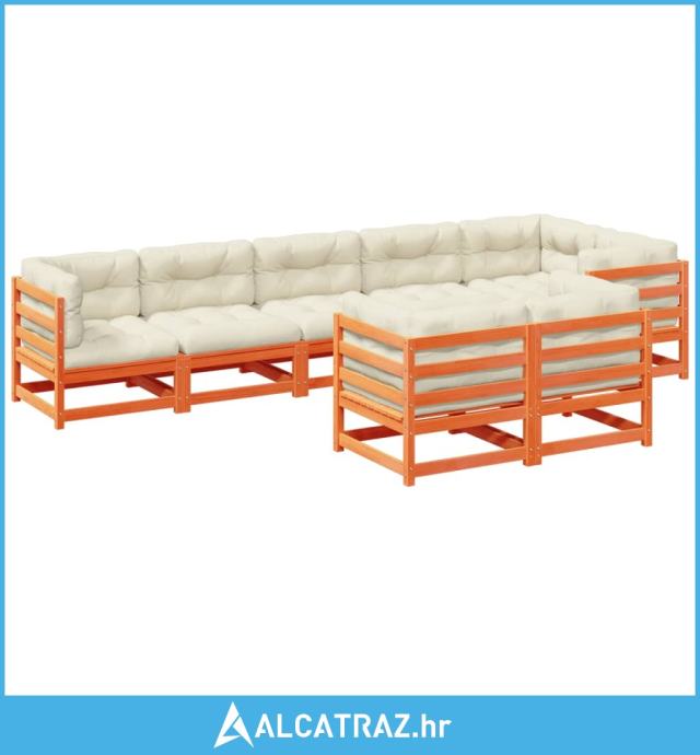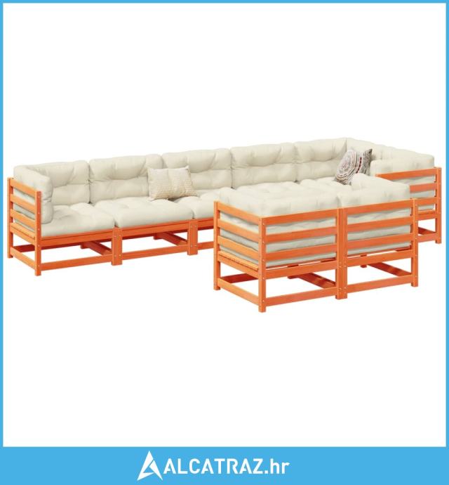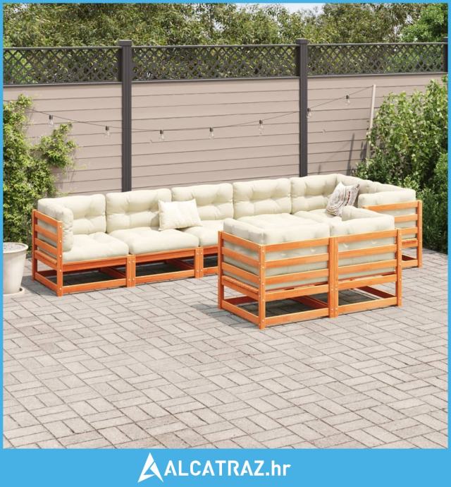 8-dijelni set vrtnih sofa s jastucima voštano smeđi od borovine - NOVO