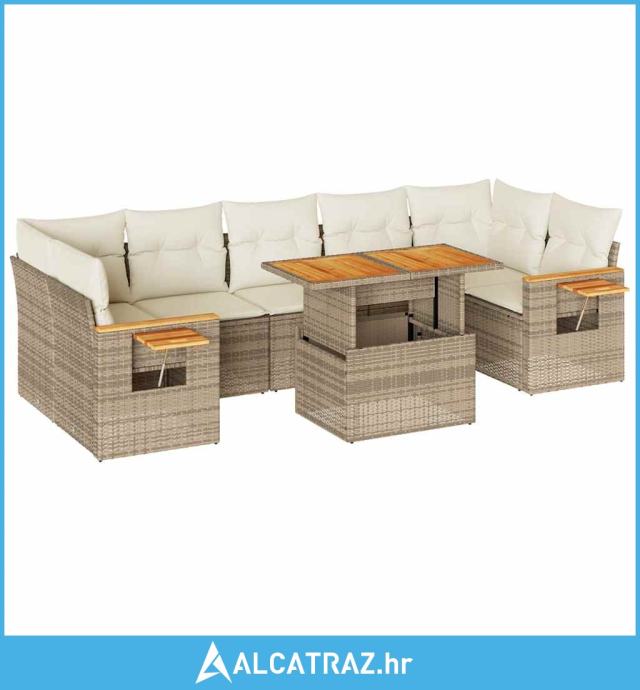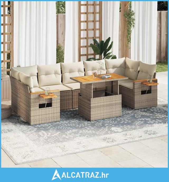 8-dijelni set vrtnih sofa od poliratana s jastucima bež bagrem - NOVO