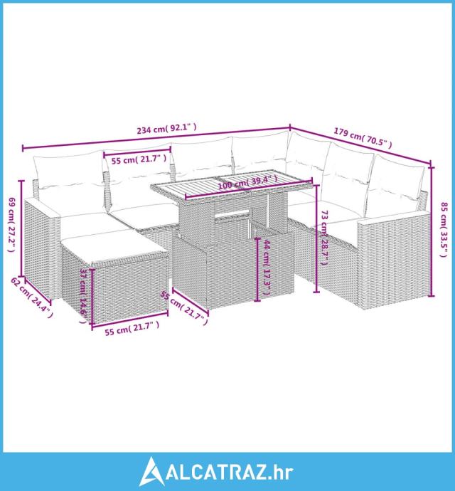 - 7 x jastuk za sjedalo s odvojivom i perivom navlakom
