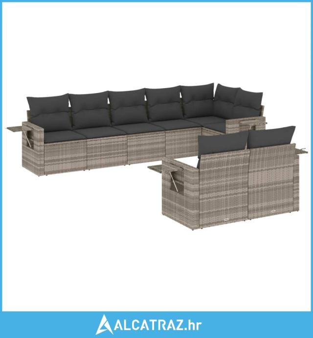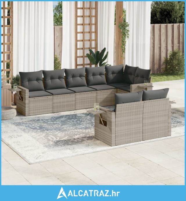 8-dijelni set vrtnih sofa od poliratana s jastucima svjetlosivi - NOVO