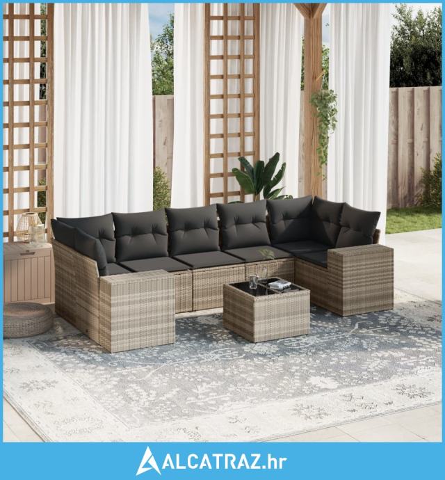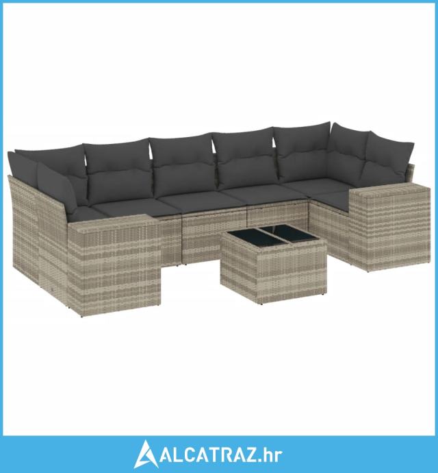 8-dijelni set vrtnih sofa od poliratana s jastucima svjetlosivi - NOVO