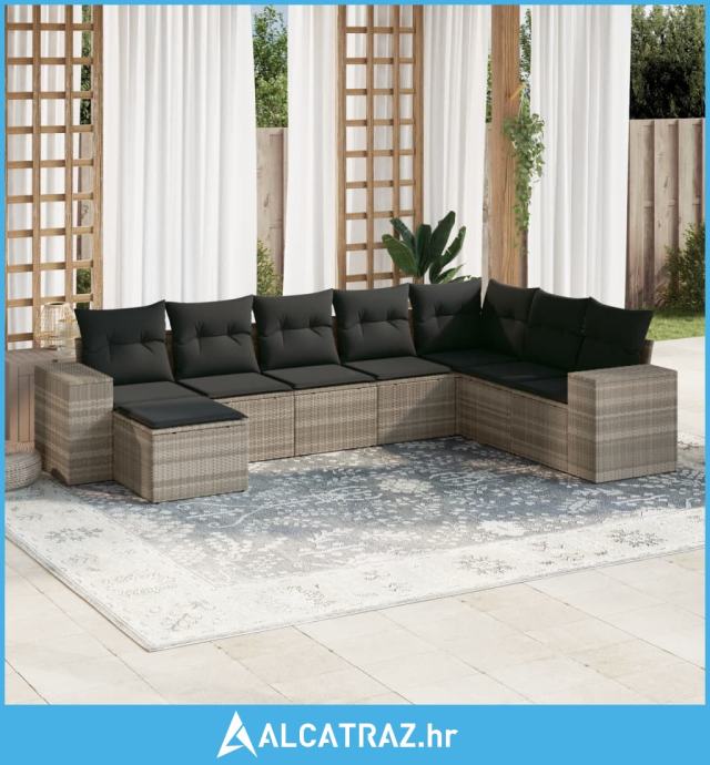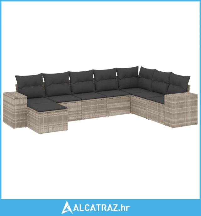 8-dijelni set vrtnih sofa od poliratana s jastucima svjetlosivi - NOVO