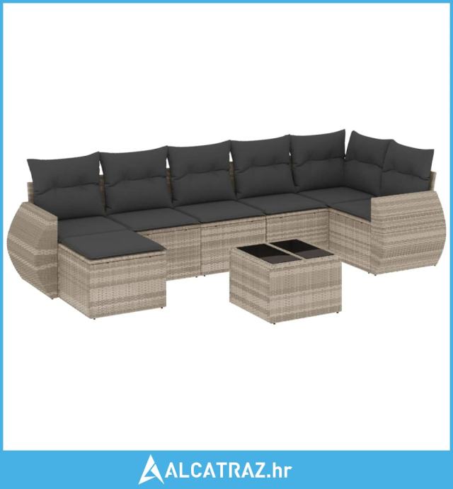 8-dijelni set vrtnih sofa od poliratana s jastucima svjetlosivi - NOVO