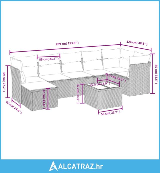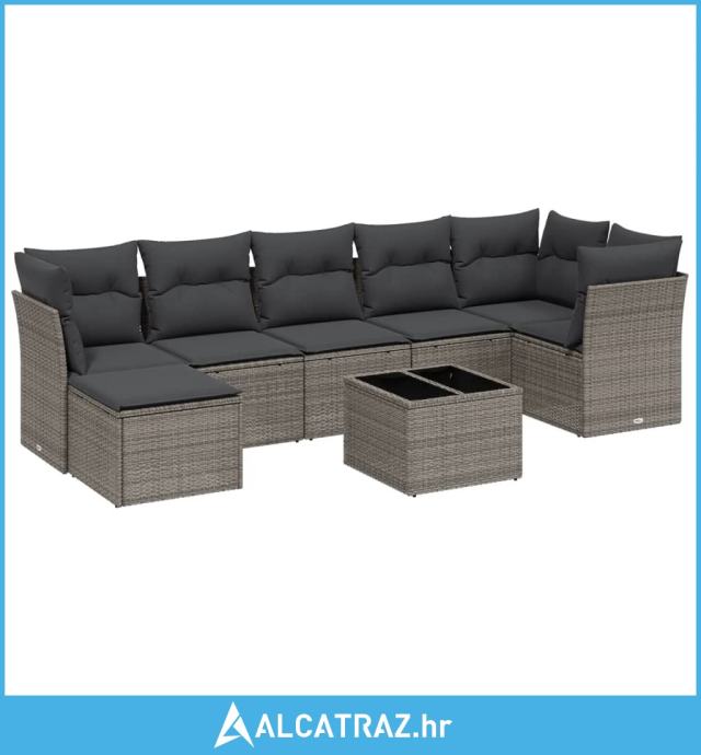 8-dijelni set vrtnih sofa od poliratana s jastucima svjetlosivi - NOVO