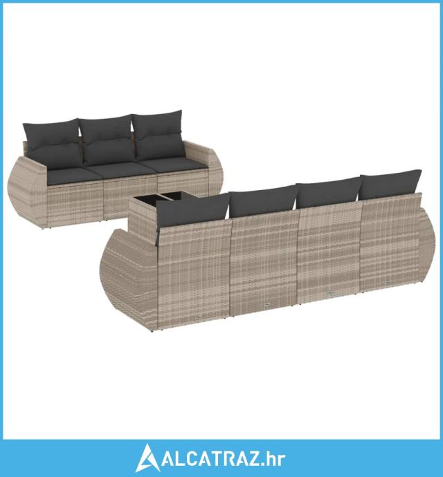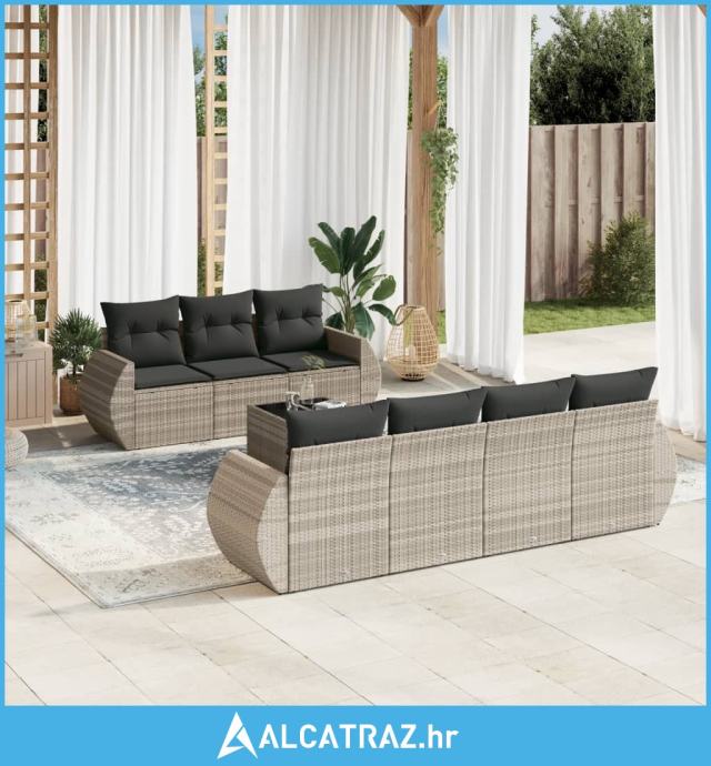 8-dijelni set vrtnih sofa od poliratana s jastucima svjetlosivi - NOVO