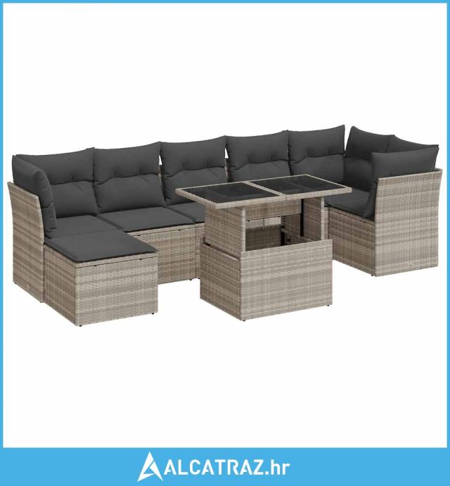 8-dijelni set vrtnih sofa od poliratana s jastucima svjetlosivi - NOVO