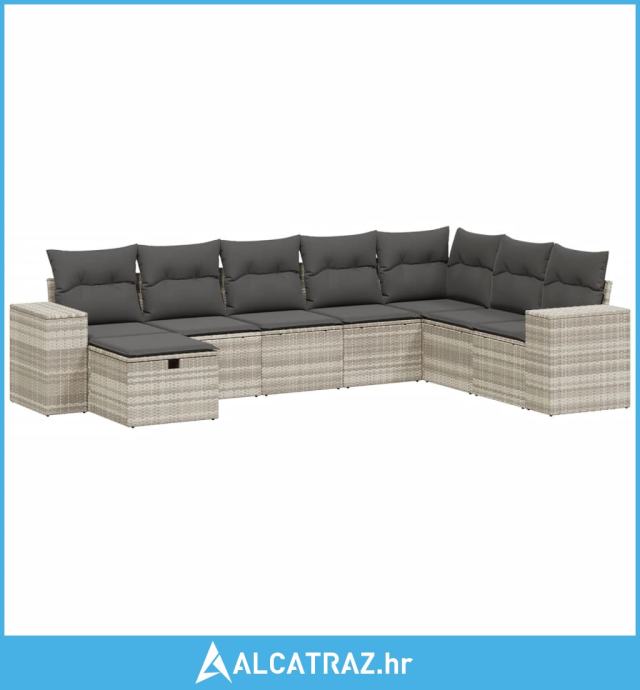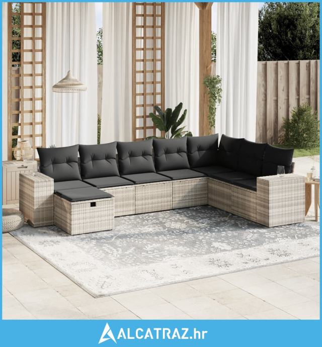 8-dijelni set vrtnih sofa od poliratana s jastucima svjetlosivi - NOVO