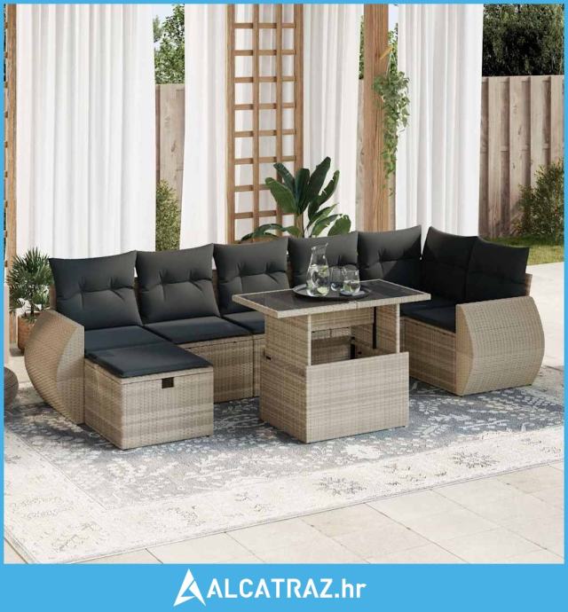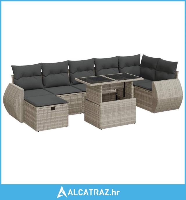 8-dijelni set vrtnih sofa od poliratana s jastucima svjetlosivi - NOVO
