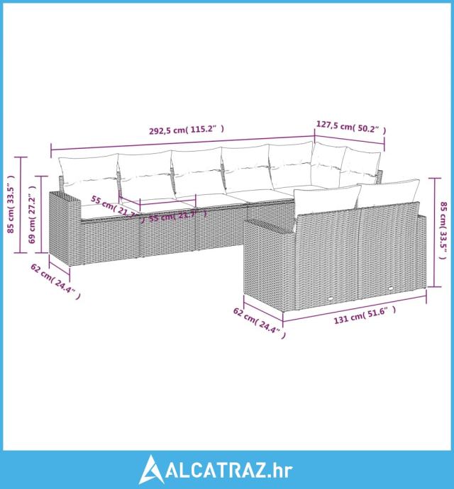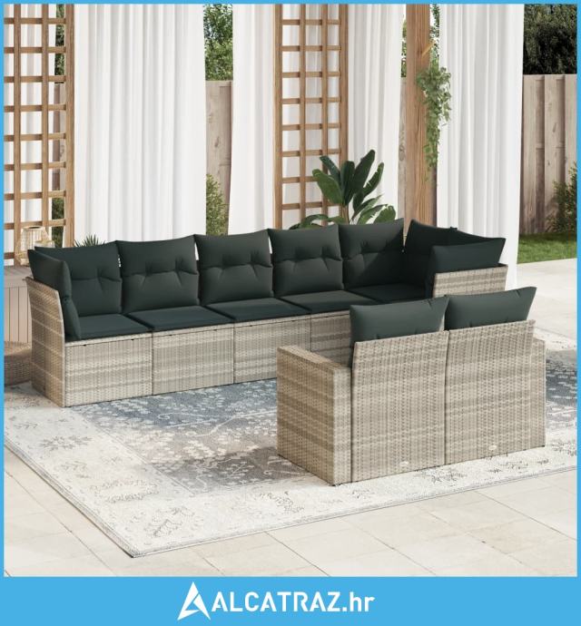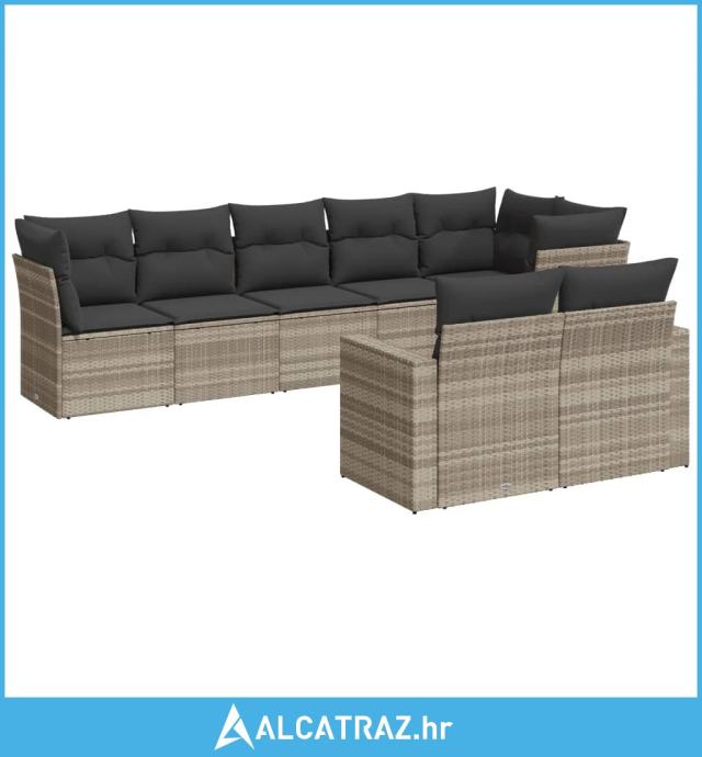 8-dijelni set vrtnih sofa od poliratana s jastucima svjetlosivi - NOVO