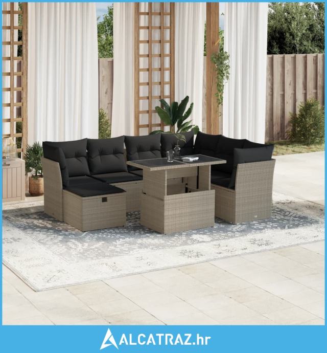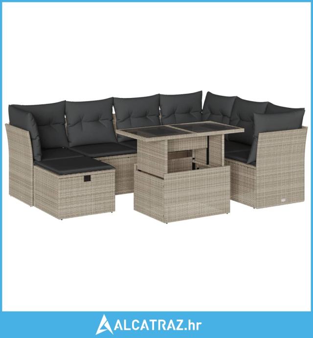 8-dijelni set vrtnih sofa od poliratana s jastucima svjetlosivi - NOVO