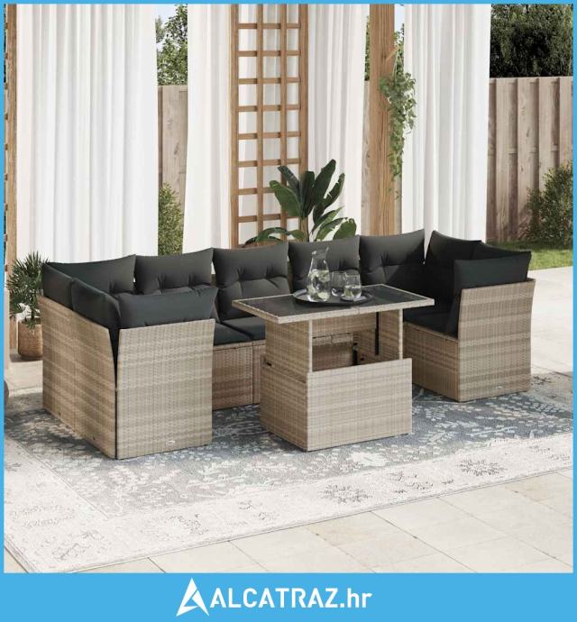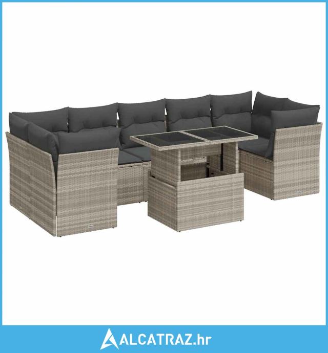 8-dijelni set vrtnih sofa od poliratana s jastucima svjetlosivi - NOVO