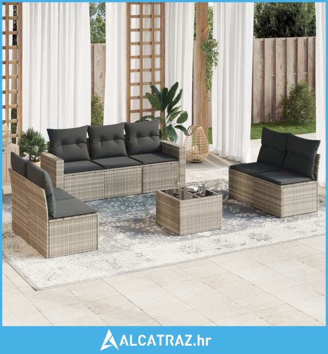 8-dijelni set vrtnih sofa od poliratana s jastucima svjetlosivi - NOVO