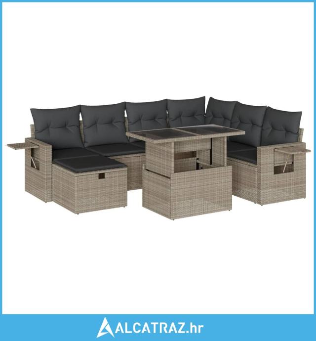 8-dijelni set vrtnih sofa od poliratana s jastucima svjetlosivi - NOVO