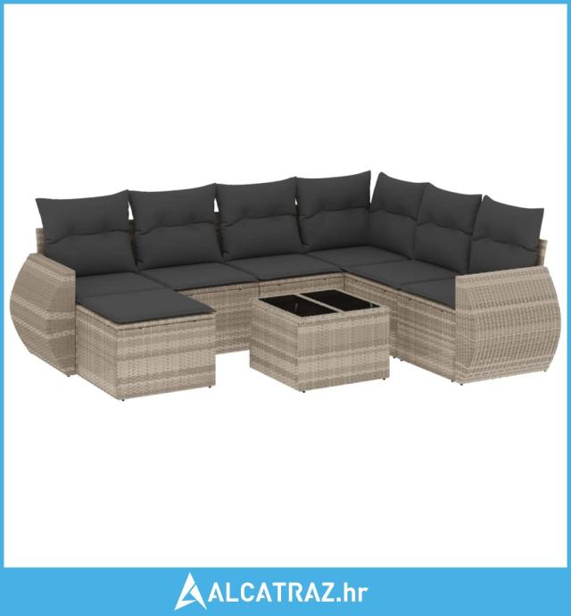 8-dijelni set vrtnih sofa od poliratana s jastucima svjetlosivi - NOVO