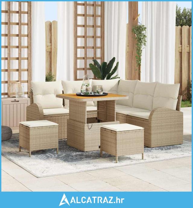 8-dijelni set vrtnog kauča s jastučićima Bež Poliratan Akacija - NOVO