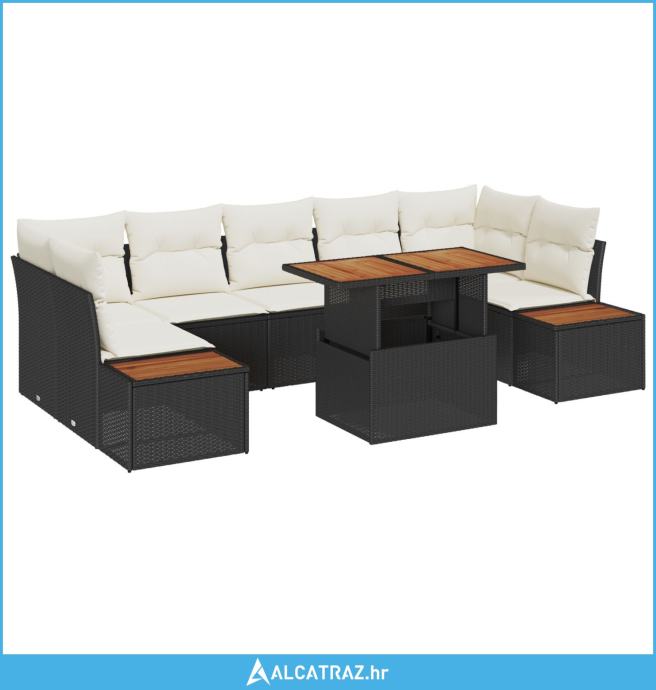 8-dijelni vrtni blagovaonski set s jastučićima crni poli ratan akacija